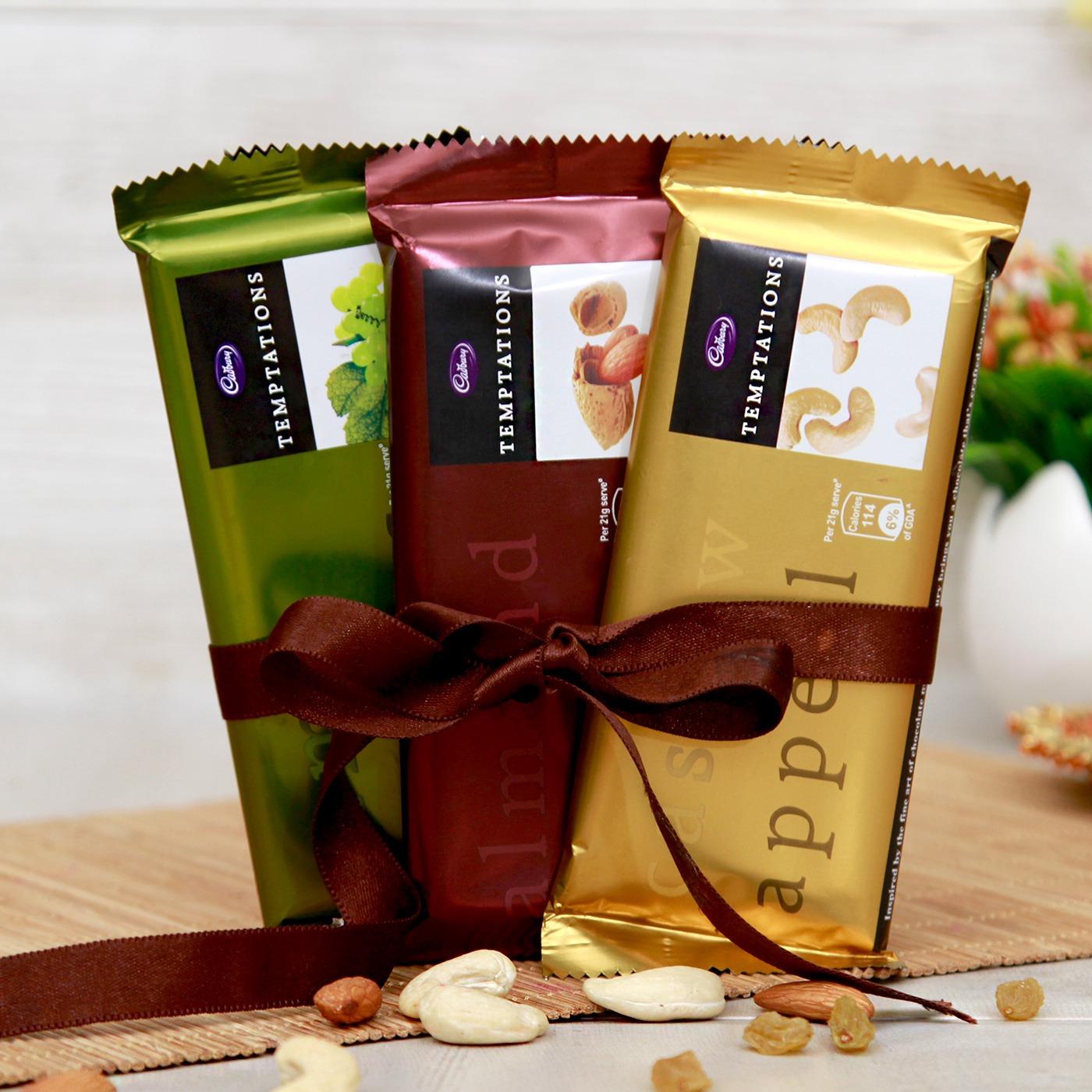 CONTAINS Pack of 3 Cadbury Temptations 72g each - Almond Treat, Rum Raisins, and Cashew Appeal.